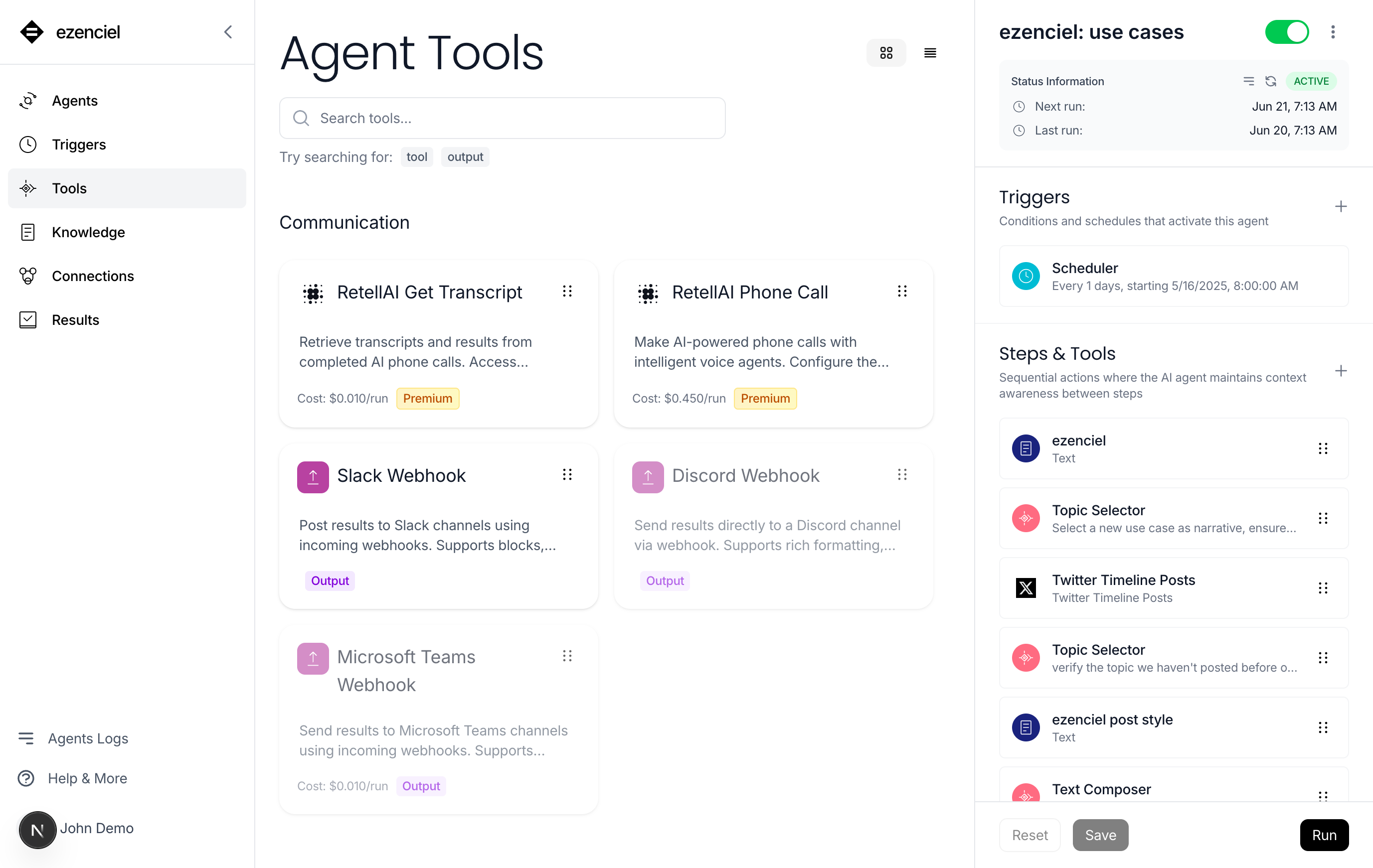 Our agents come equipped with a versatile set of tools to interact with your existing systems, ensuring seamless workflow automation from day one.